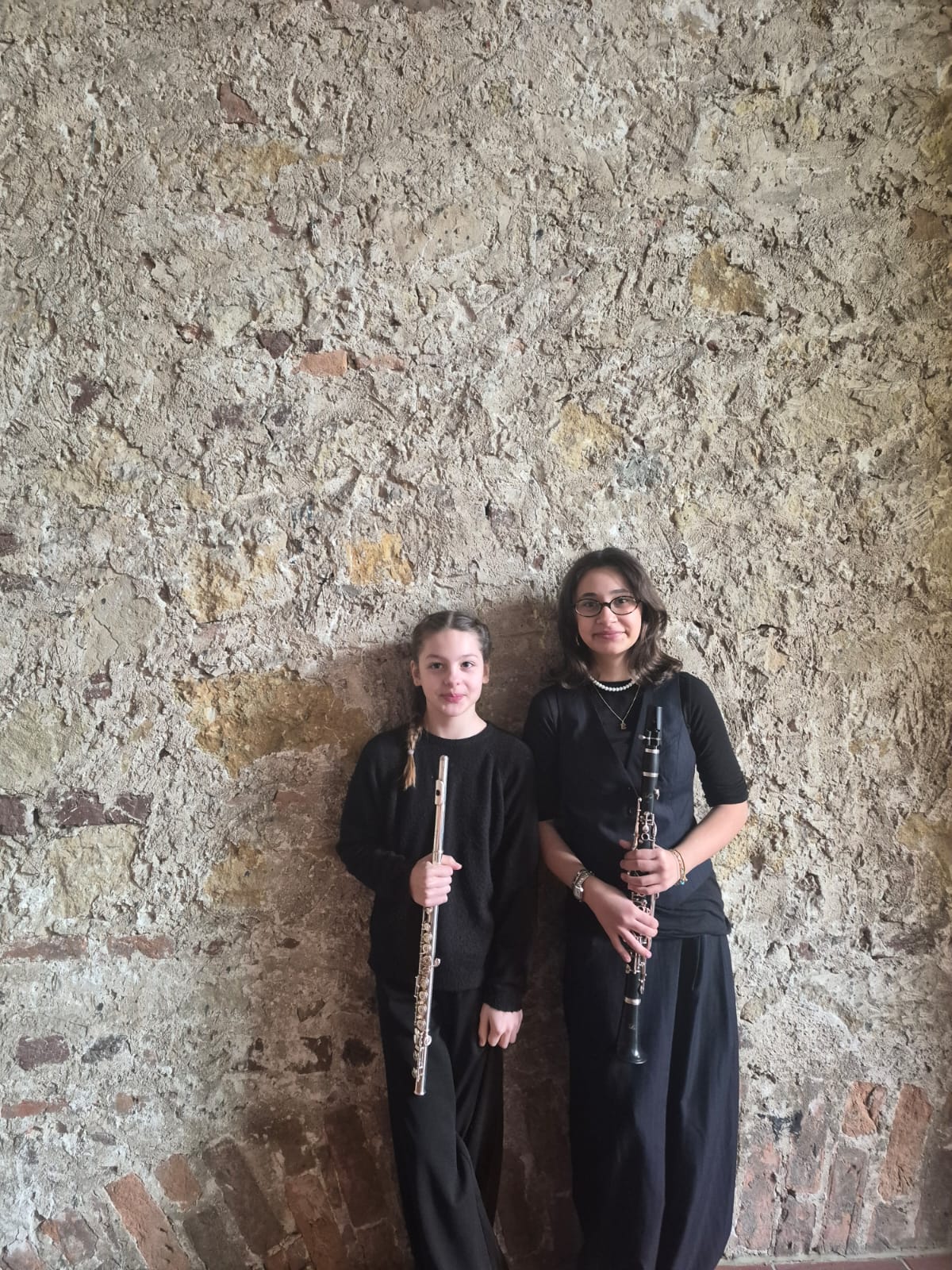 Dieser Erfolg basiert neben musikalischer Begabung auch auf monatelangem Üben, Ausdauer und sehr vielen Wochenendproben. Ela Louise Büyük (Klarinettenklasse Jasmin Garlik) und ihre Kammermusikpartnerin Mara Mika (Querflötenklasse Petra Hildner) haben beide seit einigen Jahren Instrumentalunterricht an der Musikschule City West, der Bezirksmusikschule für den Bezirk Charlottenburg-Wilmersdorf.